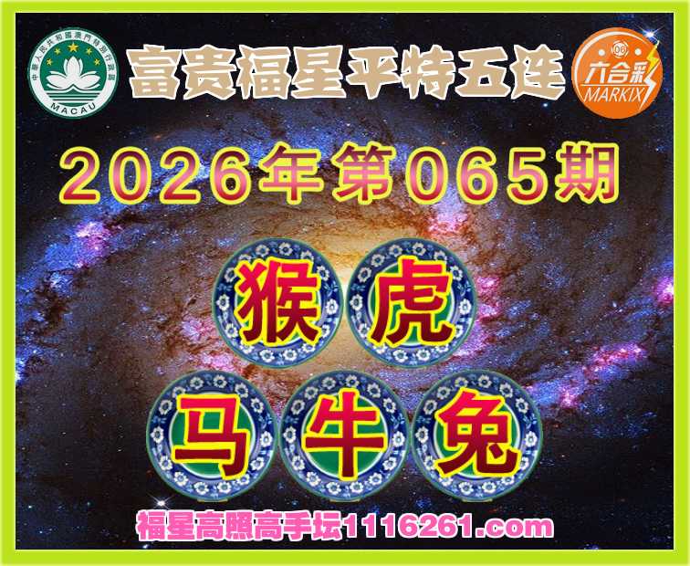 065期: ⌚《富贵福星》平特五连⌚【猴虎马牛兔】开:虎05
